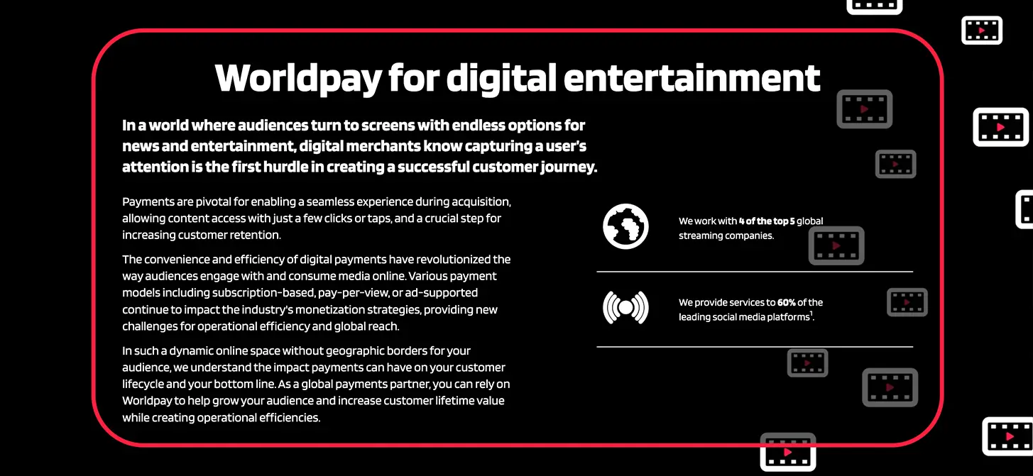 Worldpay can work with businesses like yours to simplify complex payment processes to ensure a smooth and enjoyable user experience when accessing digital content.